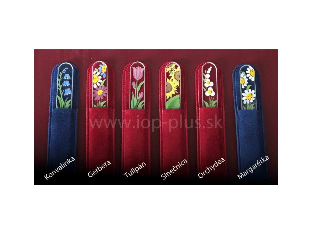 Luxusné balenie 2ks pilníkov (1x90mm+1x135mm) v príjemnom semišovom púzdre. Púzdro je pevné, preto sa hodí na každodenné používanie a nosenie v kabelke. Jeho farba môže byť červena, modrá, zelená alebo čierná. Vybrať si môžete so šiestich dekorov.Je to obľúbený darček, ktorý poteší každú ženu.