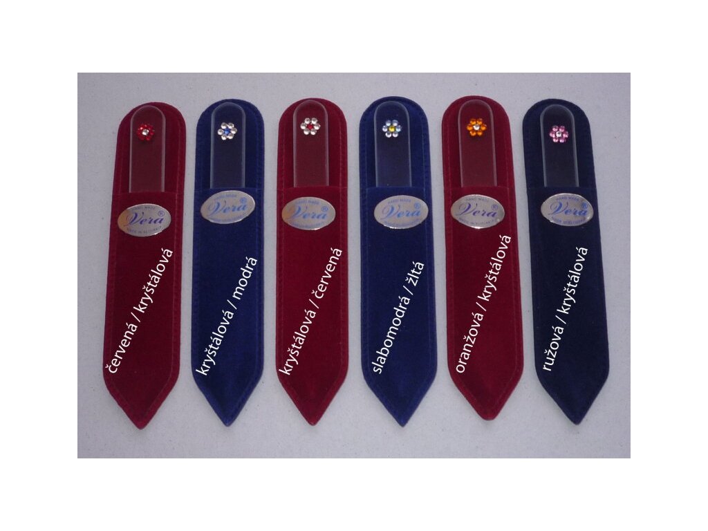 Luxusné balenie 2ks pilníkov (1x90mm+1x135mm) v príjemnom semišovom púzdre. Jedinečný darček pre potešenie Vašich známych. Meno si môžete vybrať, podľa toho, koho chcete obdarovať. Vypieskovanie mena je zahrnuté v cene. Púzdro je pevné, preto sa hodí na každodenné používanie a nosenie v kabelke. Jeho farba môže byť červená, modrá, zelená alebo čierna. Pilníky sú zdobené SWAROVSKÉHO krištáľmi, ktoré môžu byť v rôznych farebných prevedeniach.Je to obľúbený darček, ktorý poteší každú ženu.