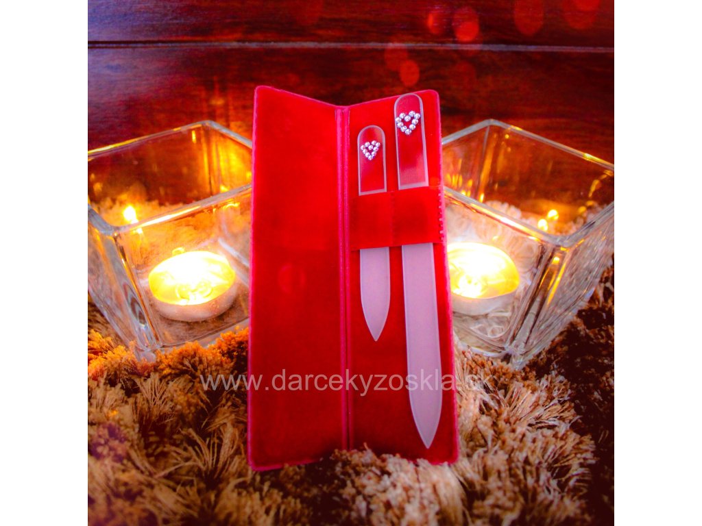 Luxusné balenie 2ks pilníkov (1x90mm+1x135mm) v príjemnom semišovom púzdre. Jedinečný darček pre potešenie Vašich blízkych. Na pilníkoch sú srdiečkom zo SWAROVSKEHO krištáľov. Je to obľúbený darček, ktorý poteší každého.