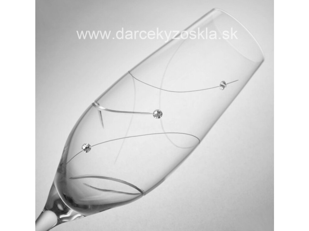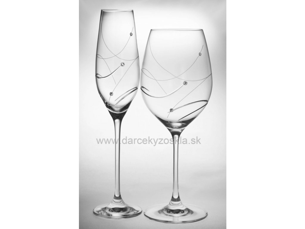 Poháre s vybrúseným matným a lešteným dekorom, ktorý je doplnený krištáľmi SWAROVSKI . Poháre sú zabalené v elegantnom balení.Vybrať si môžete z troch variant pohárov podľa objemu kalicha (cena je rovnaká):210ml - používajú sa na šampanské (výška pohára je 265mm)360ml - používajú sa na biele víno (výška pohára je 225mm)470ml - používajú sa na červené víno (výška pohára je 240mm)Cena je za balenie. V jednom balení je 6ks.