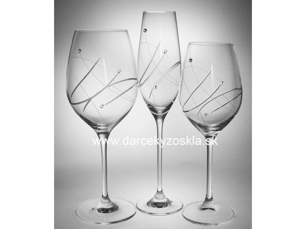 Poháre s vybrúseným matným a lešteným dekorom, ktorý je doplnený krištáľmi SWAROVSKI . Poháre sú zabalené v elegantnom balení.Vybrať si môžete z troch variant pohárov podľa objemu kalicha (cena je rovnaká):210ml - používajú sa na šampanské (výška pohára je 265mm)360ml - používajú sa na biele víno (výška pohára je 225mm)470ml - používajú sa na červené víno (výška pohára je 240mm)Cana je za balenie. V jednom balení je 6ks.