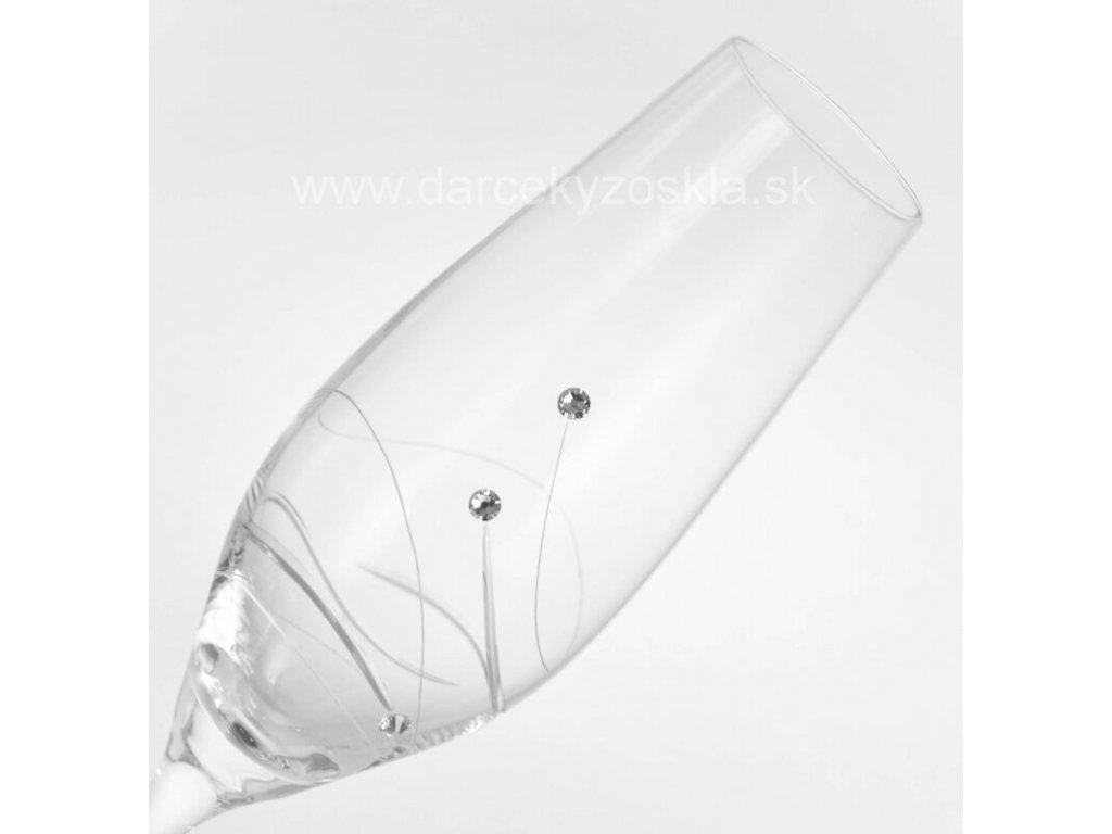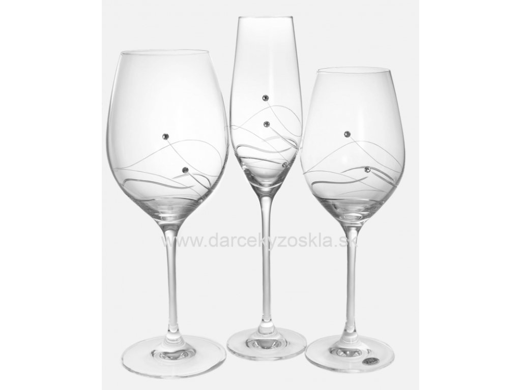 Poháre s vybrúseným matným a lešteným dekorom, ktorý je doplnený krištáľmi SWAROVSKI . Poháre sú zabalené v elegantnom balení.Vybrať si môžete z troch variant pohárov podľa objemu kalicha (cena je rovnaká):210ml - používajú sa na šampanské (výška pohára je 265mm)360ml - používajú sa na biele víno (výška pohára je 225mm)470ml - používajú sa na červené víno (výška pohára je 240mm)Cena je za balenie. V jednom balení je 6ks.