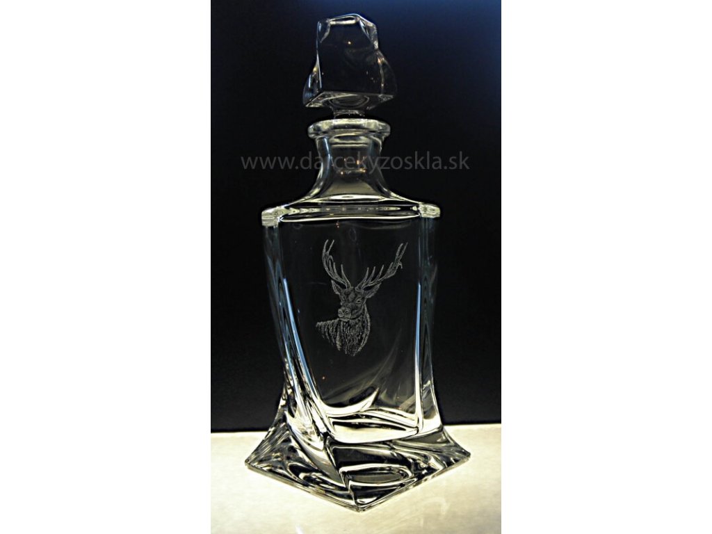 Elegantný whisky set zložený z 1 Karafy 850ml a 4 pohárov 340ml. Set je zabalený v luxusnej saténovej krabici. Na karafe a pohároch sú ručne vygravírované obrázky poľovníckej zveri. Gravírovanie je zahrnuté v cene.