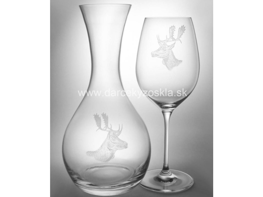 Poháre a karafa s ručne gravírovaným vzorom poľovnej zveri. Poháre aj karafa sú zabalené v luxusnom balení.Vybrať si môžete z dvoch variant pohárov podľa objemu kalicha (cena je rovnaká):360ml - používajú sa na biele víno (výška pohára je 225mm)470ml - používajú sa na červené víno (výška pohára je 240mm)Karafa má objem 1200ml (výška 250mm).Cana je spolu za 6ks pohárov a 1ks karafa.