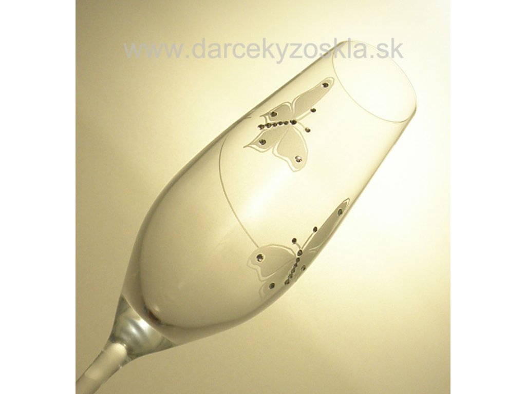 Elegantné svadobné poháre s párom motýľov doplnený krištáľm SWAROVSKI . Objem pohára si môžete vybryť: