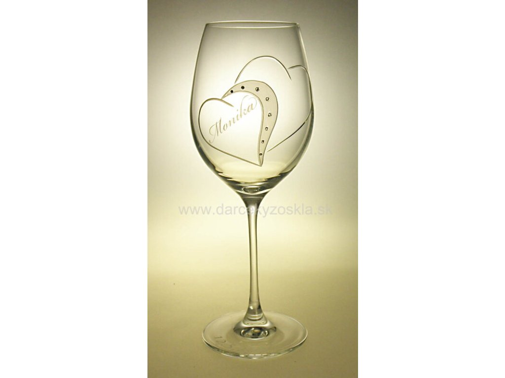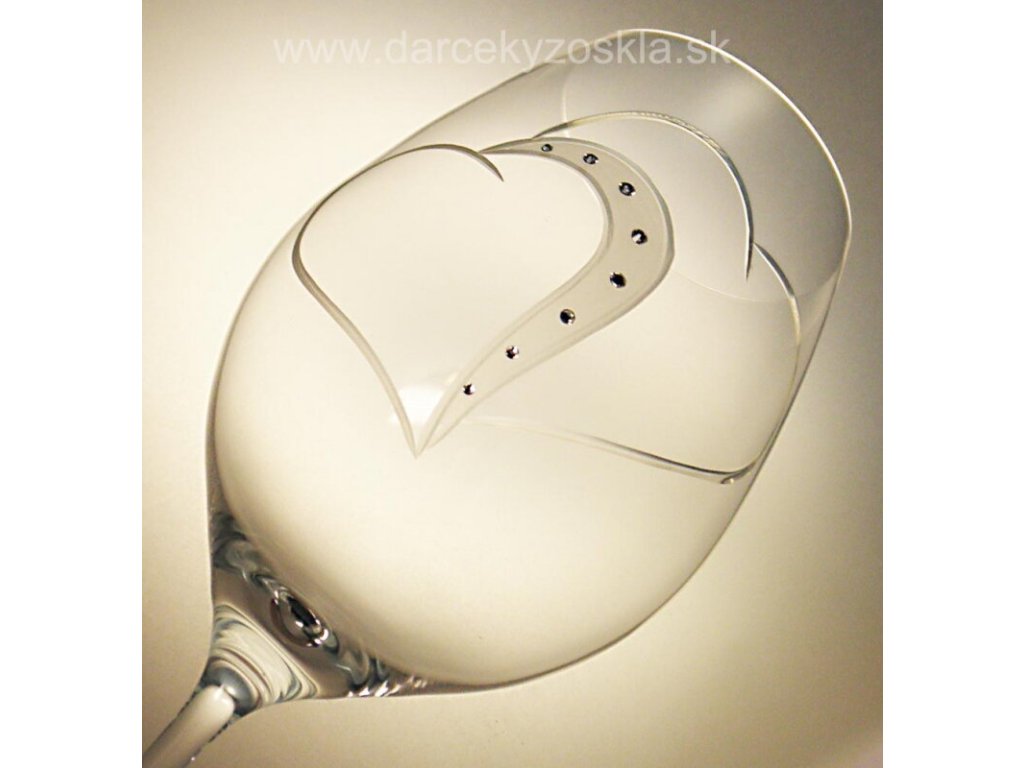 Elegantné svadobné poháre s lešteným a matovaným dekorom dvoch sŕdc doplnený krištáľmi SWAROVSKI. Objem pohára si môžete vybrať:
