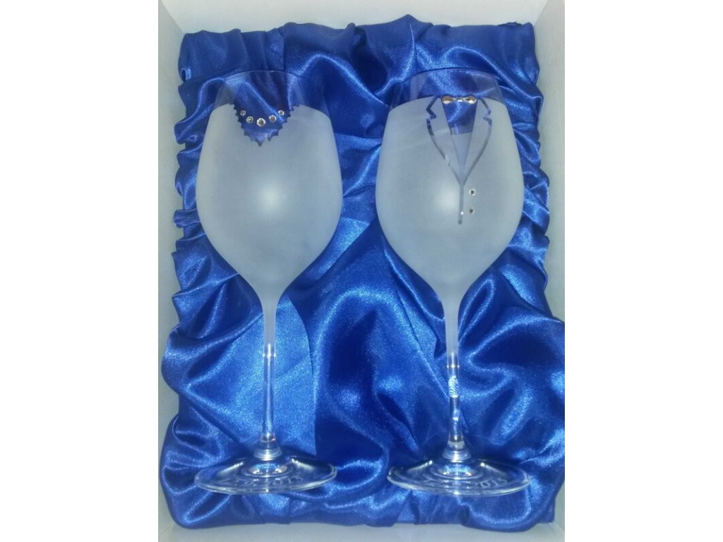 Elegantné svadobné poháre s pieskovaným dekorom nevesty a ženícha doplnený krištáľmi SWAROVSI. Objem pohára si môžete vybrať: