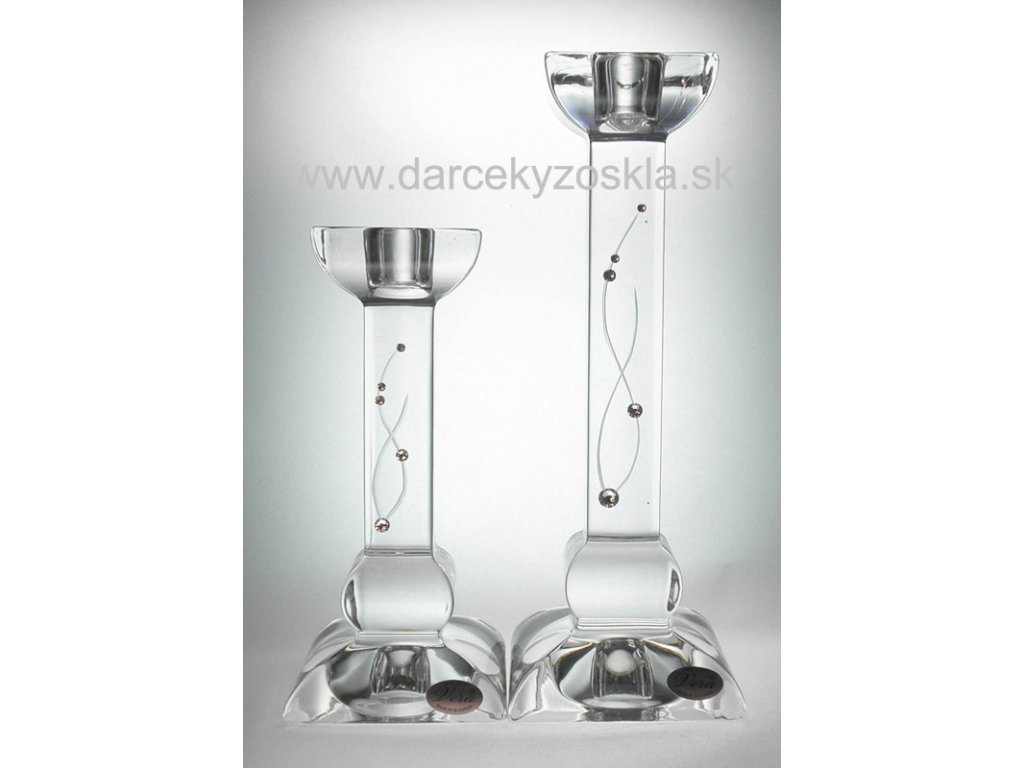 Krásny krištáľový svietnik zdobený jemným brúseným dekorom a doplnený krištáľmi SWAROVSKI. Výšku svietnika si môžete vybrať: 150 alebo 200mm. Cena je za 1ks.