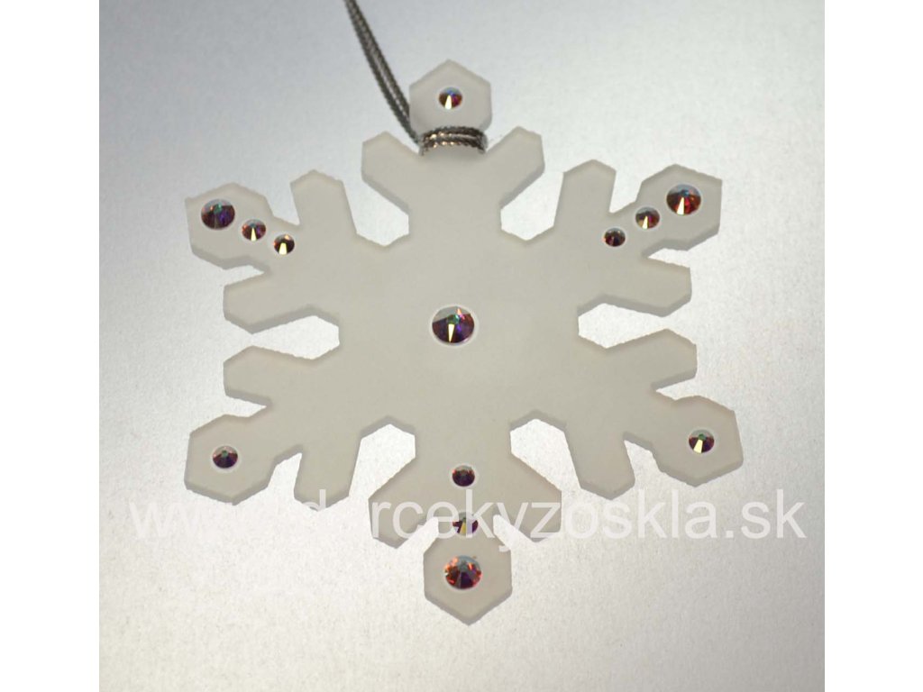 Krásna sklenená vločka, ktorá Vám spríjemní vianočnú atmosféru. Vytvorená je z pieskovaného skla, dekorovaná perleťovými krištáľmi SWAROVSKI. Každá vločka má aj strieborný motúzik pre zakvačenie na vianočný stromček.Jej priemer je 70mm a hrúbka 3mm. Cana je vždy za 1ks.