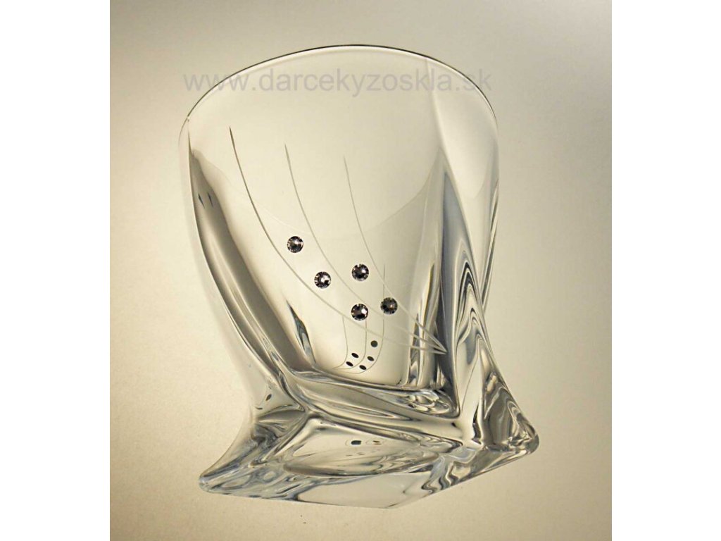 Elegantný Whisky set dekorovaný jemným brúseným dekorom a krištáľmi SWAROVSKI . Set pozostáva z 1 Karafy 850ml a 6 pohárov 340ml. Zabalený je v elegantnej krabici. Fľašu, prípadne aj poháre môžete doplniť originálnym popisom, ktorý bude vypieskovaný.